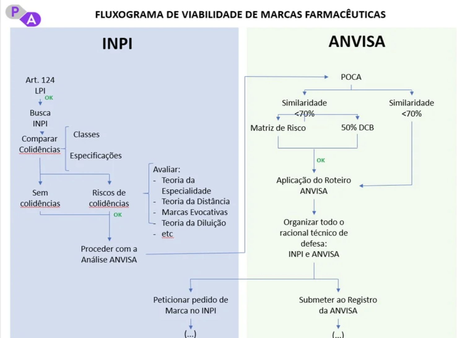 Assim, como o foco de análise da ANVISA tem sensíveis diferenças em relação ao foco de exame de marcas pelo INPI, a análise de viabilidade de “marcas de medicamentos” durante a sua criação, é bastante complexa, visto que o nome eleito deverá ser aceito por ambas instituições ANVISA e INPI.